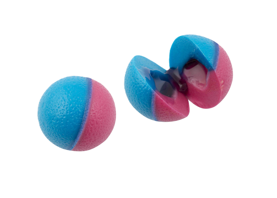 Kyslé želé a náplňou (10%), ovocná príchuť - Zloženie: glukózový sirup, cukor, dextróza, želatina; kyselina: E330; želírujúca látka: pektín; farbiace rastlinné výťažky: čierne ríbezle, karotka, reďkovka, sladké zemiaky, jablko; arómy; farbivo: E133; povlaková látka: E901. Nevhodné pre deti do 5 rokov! Pred prehlnutím dobre rozhryzať! Výživové hodnoty v 100 g : Energia: 1357 kJ / 319 kcal, Tuky: 0,2 g, z toho nasýtené mastné kyseliny: 0,2 g, Sacharidy: 74 g, z toho cukry: 56 g, Bielkoviny: 3,6 g, Soľ: 0,20 g.